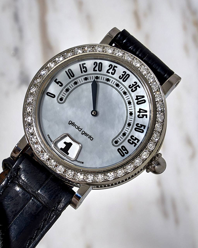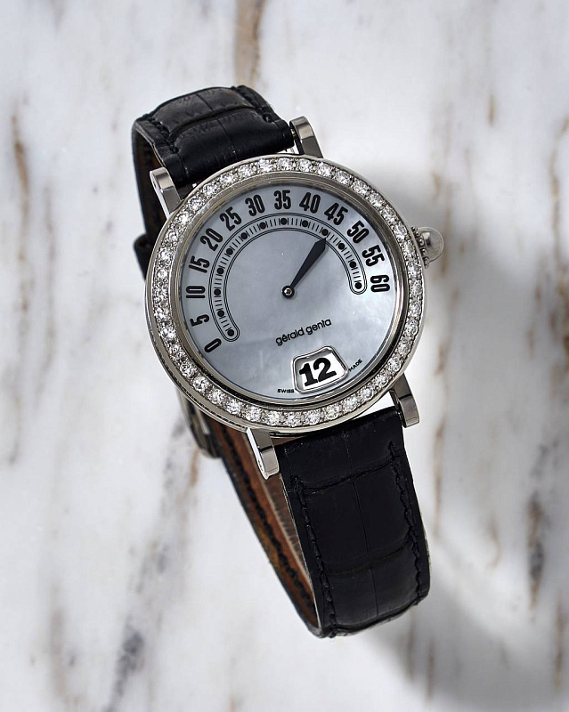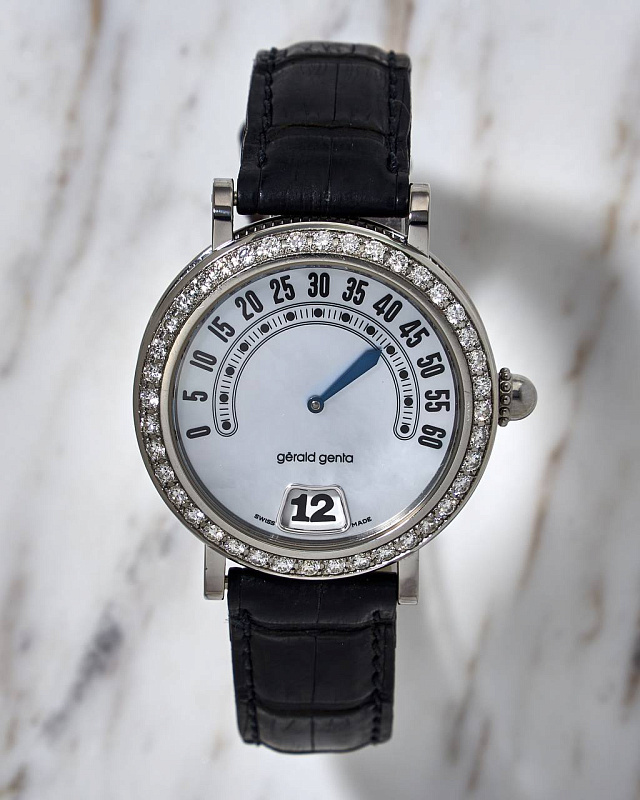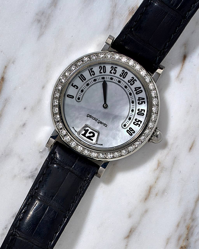 Gérald Genta Retrograde Minutes Jump Hour Diamond Bezel & MOP Dial