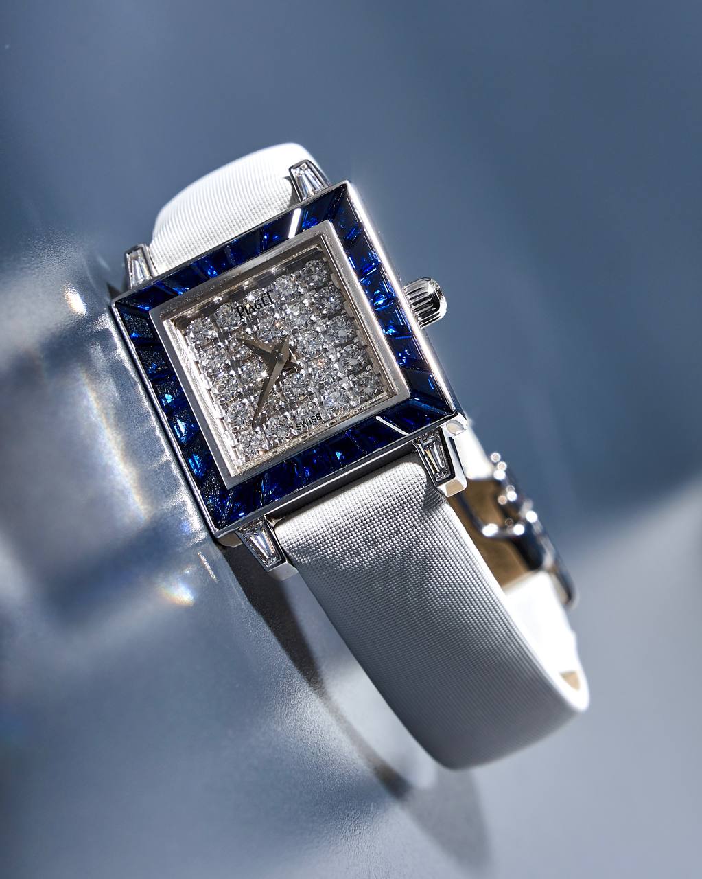 Piaget Pave Diamond Dial White Gold and Sapphire Bezel 5072